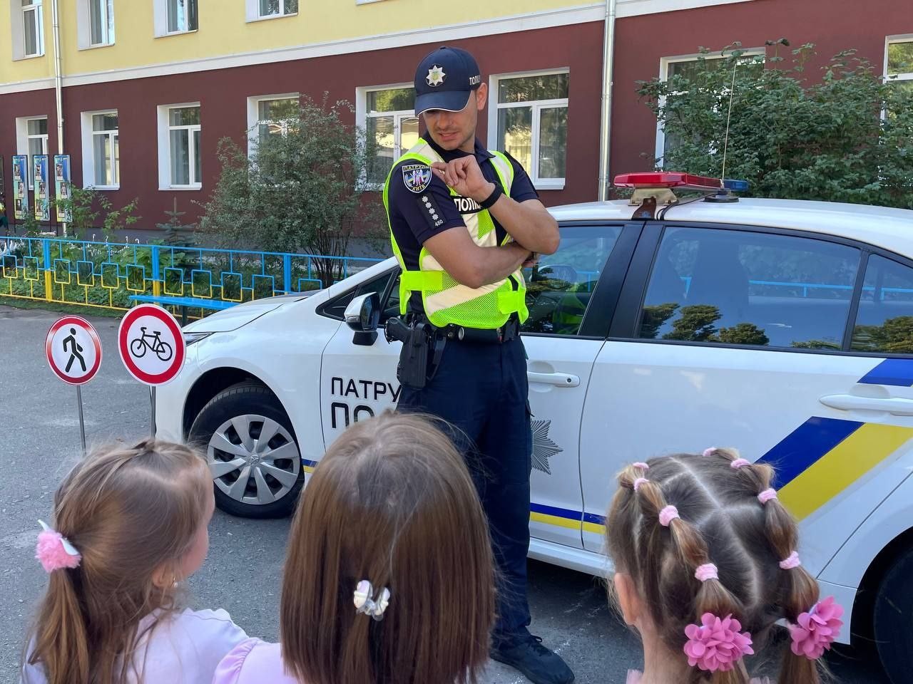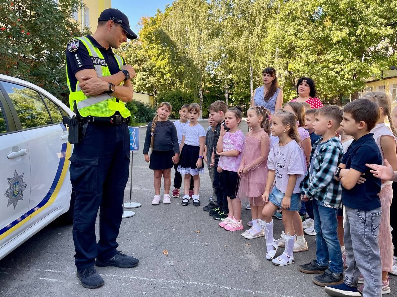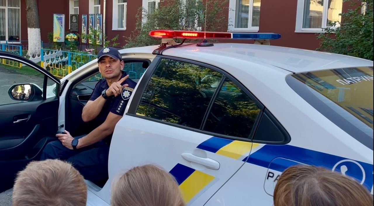 Сьогодні в рамках Всеукраїнського місячника «Увага! Діти на дорозі» до нашої школи завітав представник управління патрульної поліції Голосіївського району міста Києва — капітан Максим Міхеєв.